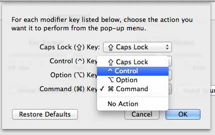 Attribuer l'action de commande Mac OS X à une autre touche