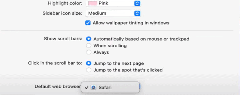 Dans les Préférences Système, recherchez et ouvrezGénéral, souvent trouvé en haut de la fenêtre. Ici, vous verrez une option intituléeNavigateur Web par défaut. Cliquez sur le menu à côté pour afficher une liste de tous les navigateurs installés sur votre Mac.