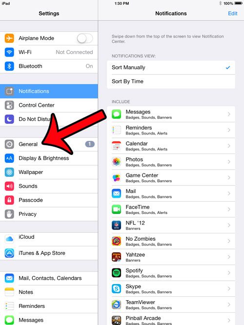 - Étape 2 : Sélectionnez leGénéraloption dans la colonne sur le côté gauche de l’écran.