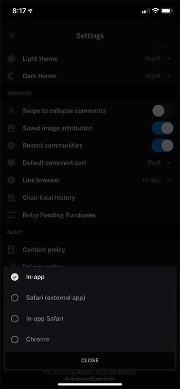 Étape 5 : Sélectionnez le navigateur Web à utiliser lorsque vous cliquez sur un lien dans l'application Reddit.