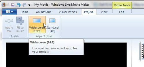 Étape 4 : Cliquez sur le bouton « Écran large » ou « Standard » en haut de la fenêtre pour basculer entre les différents rapports d'aspect. Une fois que vous avez terminé, vous pouvez enregistrer la vidéo en cliquant sur l'onglet « Movie Maker » dans le coin supérieur gauche de la fenêtre.
