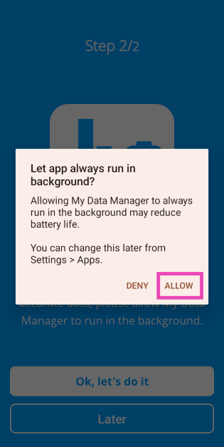 Étape 3 :Autoriser My Data Manager à s'exécuter dans learrière-plan.