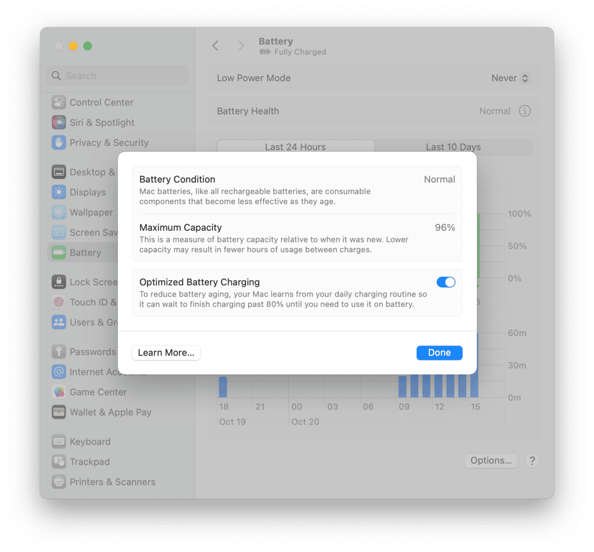 Sur les versions plus récentes de macOS, il existe une section entière dans les paramètres système dédiée à l'état de la batterie.
