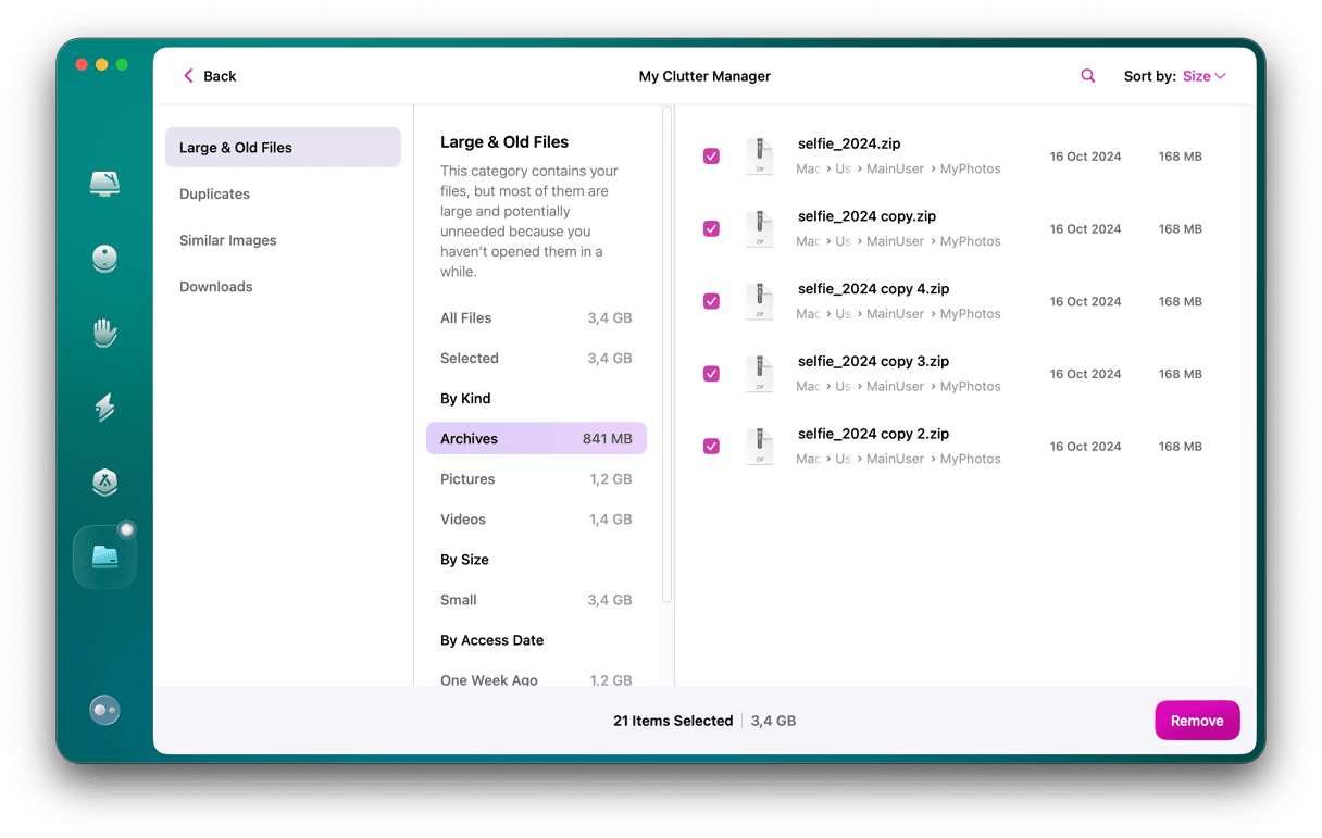 - Choisissez ce qui occupe le plus de place. Si vous êtes prêt à dire au revoir à ces fichiers, cliquez sur Supprimer.