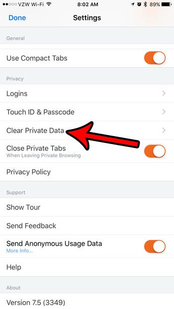 Étape 5 : Faites défiler vers le bas et choisissez leEffacer les données privéesoption.