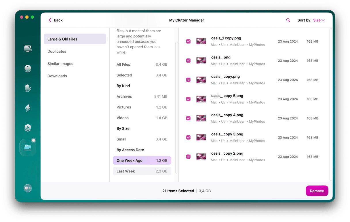 Sélectionnez Fichiers volumineux et anciens dans la barre latérale.
