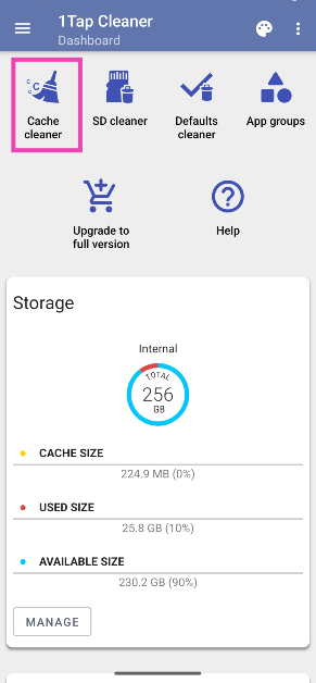 Videz le cache de toutes les applications à l'aide de 1Tap Cleaner