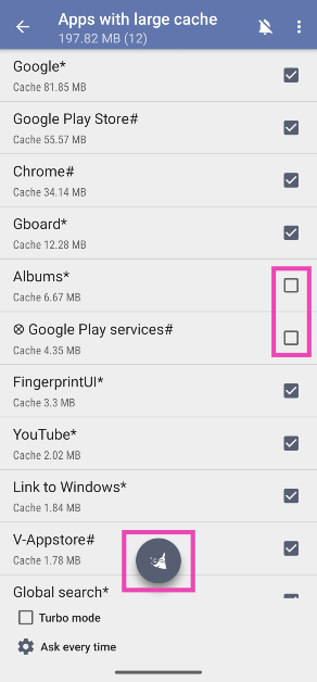 Étape 6 : Décochezles applications que vous souhaitezexclureet frappe leicône de balaipour la dernière fois.