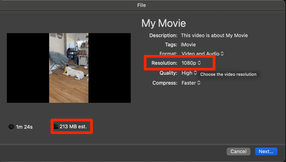 - Utiliser iMovie ou QuickTime, vous pouvez compresser une vidéo en modifiant sa résolution.