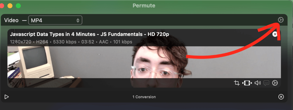 Ensuite, recherchez l'icône d'engrenage dans le coin supérieur droit du fichier vidéo. Il s'agit du menu des paramètres.