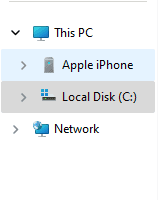 - Accédez à votre iPhone : dans la barre latérale gauche de l'Explorateur de fichiers, vous devriez voir votre iPhone répertorié sous « Ce PC ». Cliquez dessus pour accéder au stockage de votre iPhone.