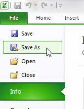 Vous pouvez choisir deconvertissez votre fichier CSV en fichier Excel 2010en cliquant sur leDéposeren haut de la fenêtre, puis en cliquant sur l'ongletEnregistrer sousoption.
