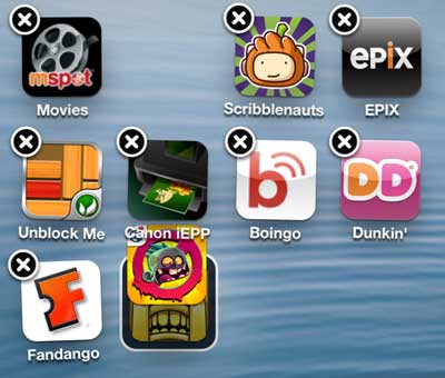 Étape 1 : Maintenez votre doigt sur l'une des applications que vous souhaitez placer dans un dossier jusqu'à ce que l'application tremble et qu'un message s'affiche.Xapparaît dans le coin supérieur gauche.