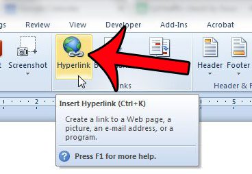 Si vous souhaitez que quelqu'un puisse cliquer sur du texte de votre document et visiter une page Web, vous souhaitez alors utiliser un lien hypertexte.Vous pouvez créer un lien hypertexte dans Microsoft Word 2010 si vous sélectionnez du texte ou une image, cliquez avec le bouton droit sur le texte ou l'image sélectionné, puis cliquez sur Lien hypertexte dans le menu contextuel.. Vous pouvez également ajouter un lien hypertexte à partir du menu Insertion.