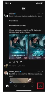 Étape 1 : Dans votre application Threads,appuyez sur l'icône de profilet puissur le menu à double ligne.