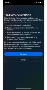 Étape 9 : FrapperContinuerpuis choisissezSupprimer le compte.