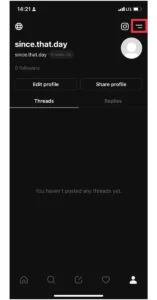 Étape 1 : Pour désactiver votre compte Threads,allez sur votre page de profiletappuyez sur le menu à double ligne.