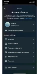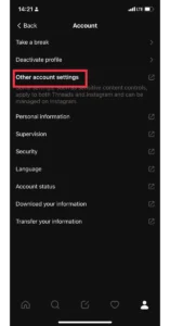 Étape 2 : Accédez auSection des compteset sélectionnezAutres paramètres du compte. Cette action vous mènera au compte Instagram.
