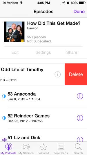 Heureusement, vous pouvez supprimer les anciens épisodes de podcast directement depuis votre iPhone 5 et commencer à libérer de l'espace pour d'autres éléments.