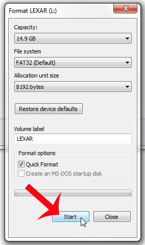 ***Il est très important que vous confirmiez que le lecteur que vous sélectionnez dans les étapes ci-dessous est bien votre clé USB. Si vous sélectionnez accidentellement le disque dur de votre ordinateur et que vous le formatez, vous risquez de perdre tous les fichiers de votre ordinateur, ainsi que votre installation de Windows. Si vous n'êtes pas certain d'avoir sélectionné le bon lecteur, vous devriez trouver une personne connaissant mieux le système d'exploitation Windows 7 et qui pourra le confirmer pour vous.**