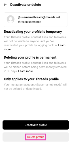 Puis-je supprimer mon profil Threads sans supprimer mon compte Instagram ?