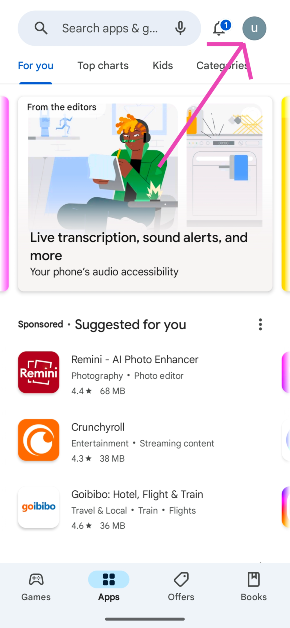 Étape 1 : Lancementlesur votre téléphone et appuyez sur votrephoto de profildans le coin supérieur droit de l'écran.