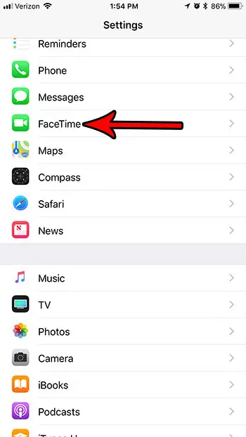 Étape 2 : Faites défiler vers le bas et choisissez leFaceTimeoption.