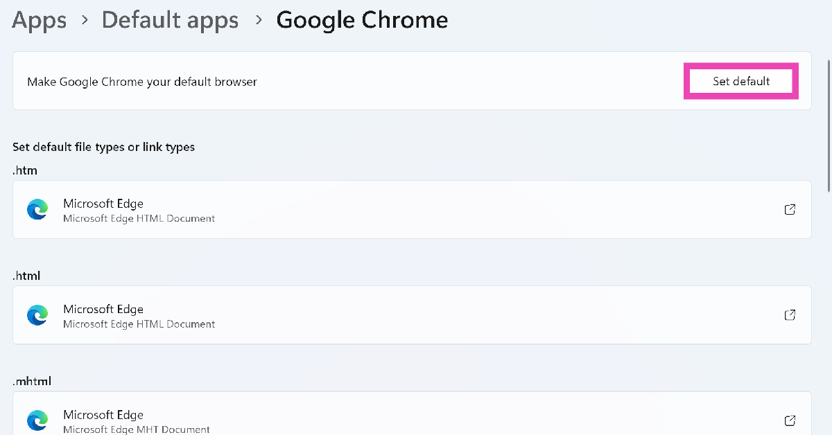 Étape 3 :Sélectionnez leapplicationvous souhaitez définir comme navigateur par défaut.