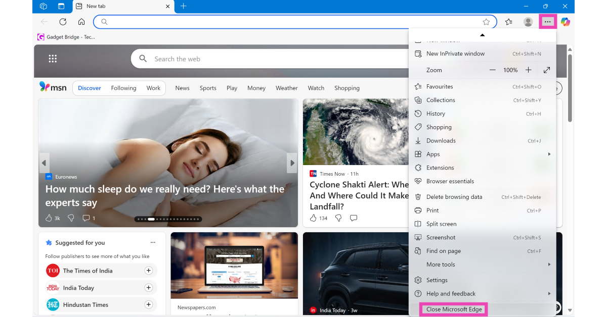 Cliquez sur les points de suspension à côté du Copilot et sélectionnez « Fermer Microsoft Edge ».