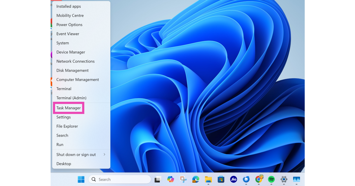 Étape 1 :Cliquez avec le bouton droit surIcône Windowsdans la barre des tâches et sélectionnezGestionnaire de tâches.