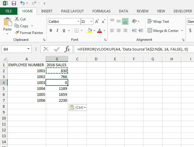 Étape 3: Modifiez la formule VLookup existante pour inclure les informations IFERROR.
