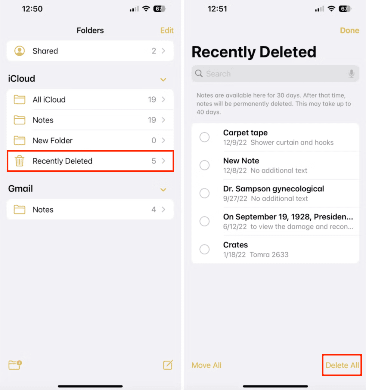 - Appuyez sur tous vos éléments récemment supprimés que vous souhaitez supprimer définitivement.
