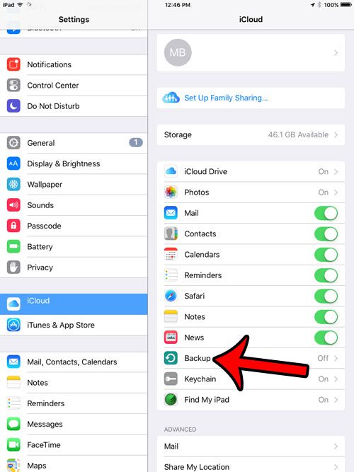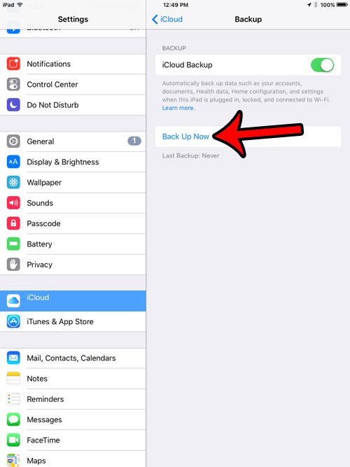 Notre guide continue ci-dessous avec des informations supplémentaires sur la façon d'activer une sauvegarde iCloud sur un iPad, y compris des images de ces étapes.