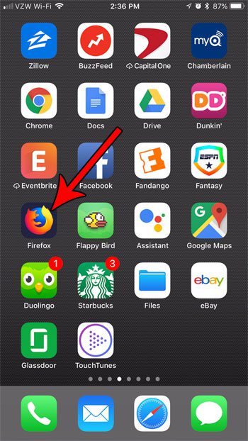 Par exemple, vous pouvez essayer d'activer le mode nuit dans le navigateur Firefox, si c'est ainsi que vous naviguez sur les sites Web. Notre tutoriel ci-dessous vous montrera où trouver le paramètre du mode nuit dans l'application Firefox pour iPhone afin que vous puissiez l'activer ou le désactiver selon vos besoins.