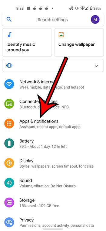 Étape 3 : Touchez leApplications et notificationsoption.