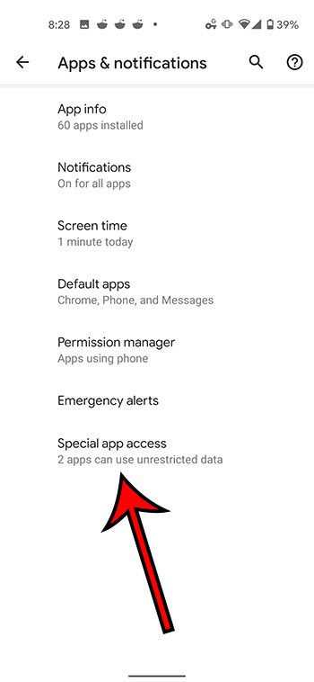 Étape 5 : SélectionnezAccès spécial aux applications.