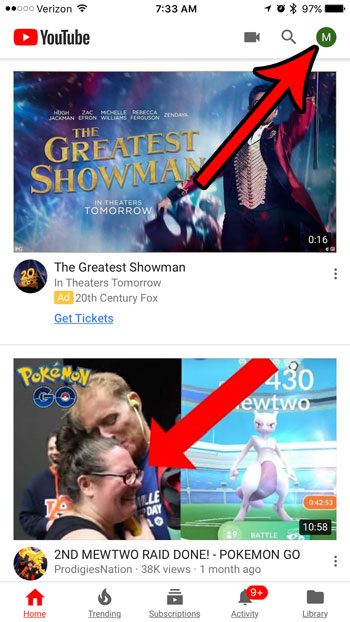 Notre article se poursuit ci-dessous avec des informations supplémentaires sur l'activation ou la désactivation du mode restreint dans YouTube sur un iPhone, y compris des images de ces étapes.