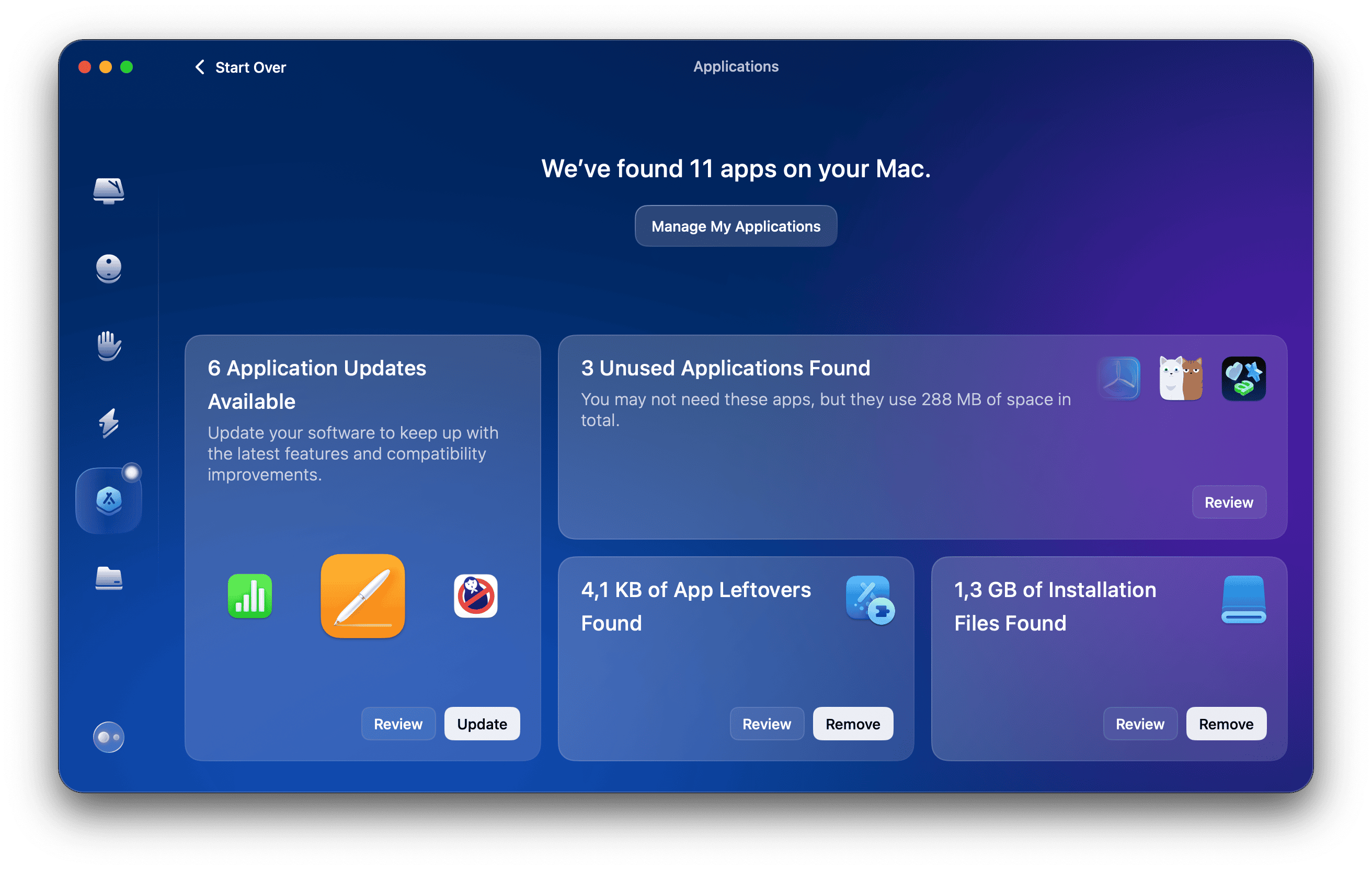 Lorsque les applications continuent de s'écraser, au lieu d'essayer douloureusement de vérifier manuellement les mises à jour, utilisez l'outil que nous avons mentionné plus tôt, CleanMymac, pour les mettre à jour en masse. Voici comment cela fonctionne: