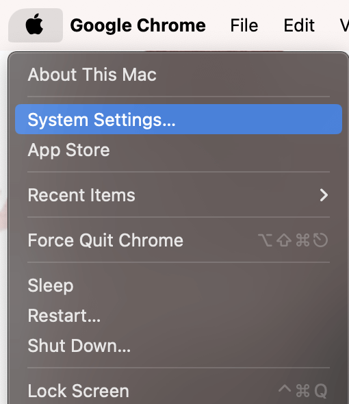 Ouvrez leMenu Pommeet cliquezParamètres systèmedans le menu déroulant.