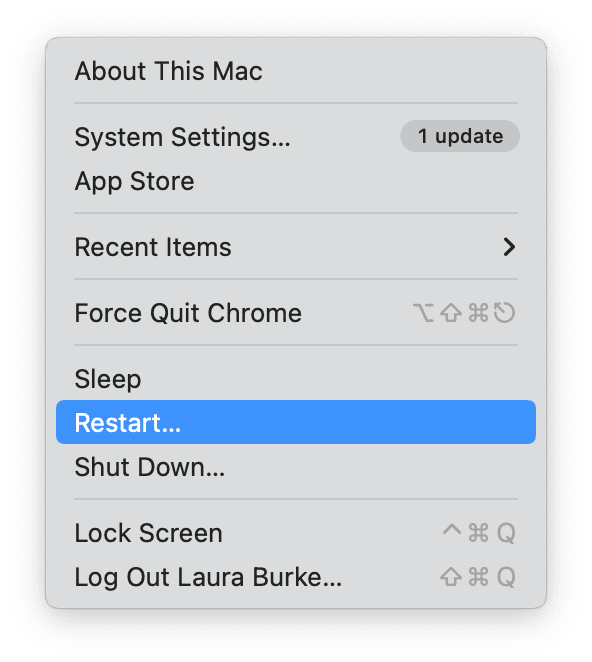Ensuite, redémarrons également votre Mac. Cette astuce rapide peut résoudre une variété de problèmes d’application et constitue souvent la solution pour les utilisateurs qui se demandent pourquoi ne puis-je pas créer une nouvelle note sur Mac ? Cliquez simplement sur Redémarrer dans votre menu Apple principal.
