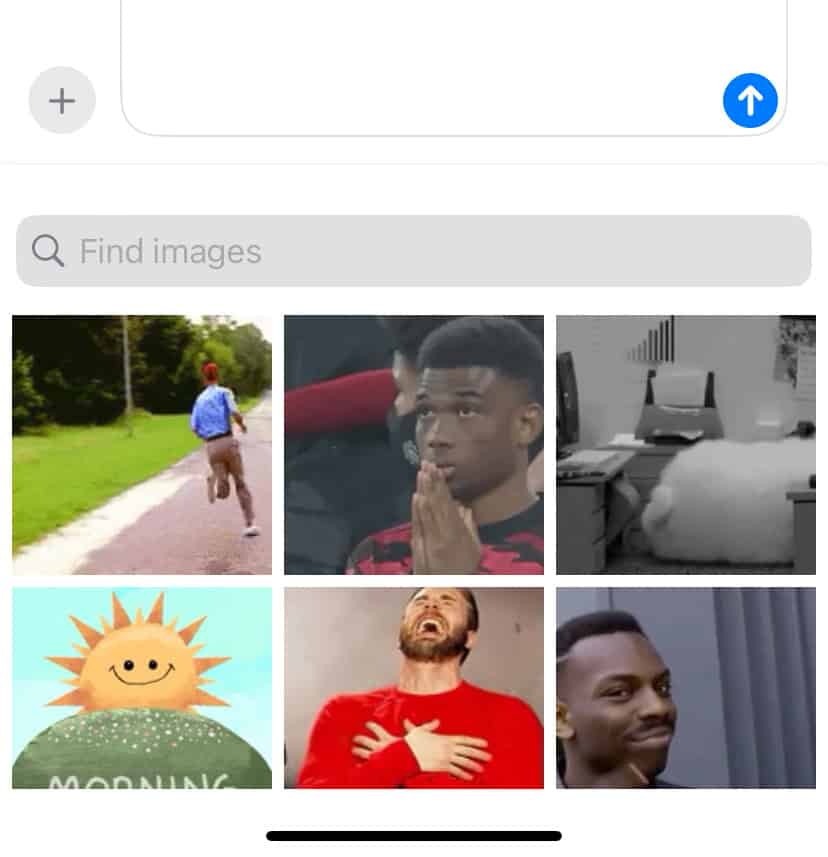 Si vous utilisez iOS 17, Apple a déplacé l'option Gifs (#images) vers le menu qui apparaît lorsque vous cliquez sur + (Plus)