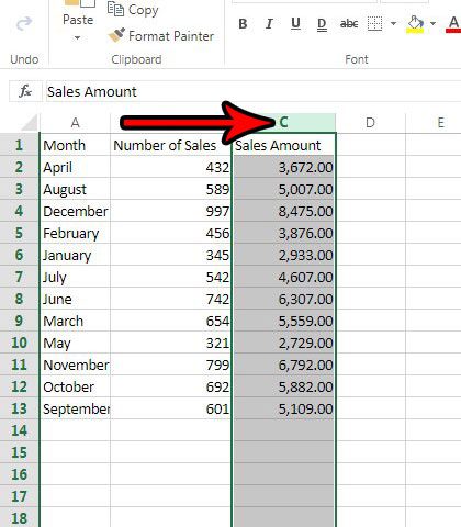 Étape 3 : cliquez sur l'en-tête de colonne en haut de la feuille de calcul pour sélectionner la colonne entière. Vous pouvez également choisir de sélectionner plusieurs colonnes si vous le souhaitez. Vous pouvez maintenir leCtrltouche de votre clavier lorsque vous cliquez sur des colonnes supplémentaires. Cela ajoutera ces colonnes à la sélection et sera inclus lorsque vous masquerez les colonnes à l'étape suivante.