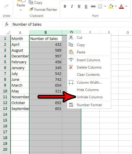 Notez qu'une colonne masquée n'est pas supprimée d'une feuille de calcul et que vous pouvez toujours utiliser des formules pour référencer des cellules dans des colonnes masquées. De plus, les colonnes peuvent être affichées ultérieurement si vous décidez que vous souhaitez afficher à nouveau les informations.