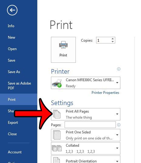 Étape 4 : Cliquez sur leImprimer toutes les pagesbouton sousParamètresdans la colonne centrale.