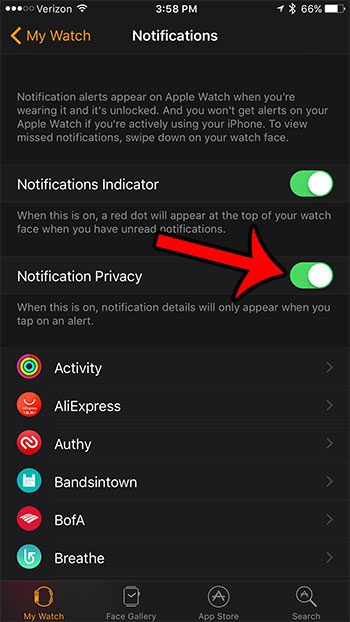 Comment activer la confidentialité des notifications sur l'Apple Watch