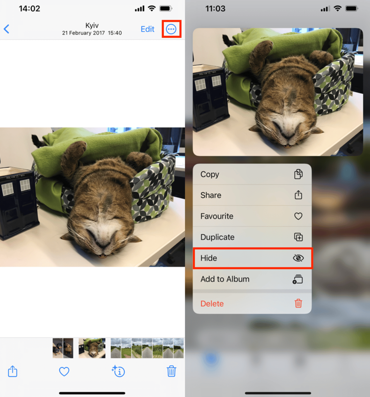 Vous pouvez désormais ouvrir l'album caché en utilisant le code d'accès de votre appareil. Il n'existe aucun autre moyen d'afficher des photos cachées sans Face ID ni mot de passe pour des raisons de sécurité.