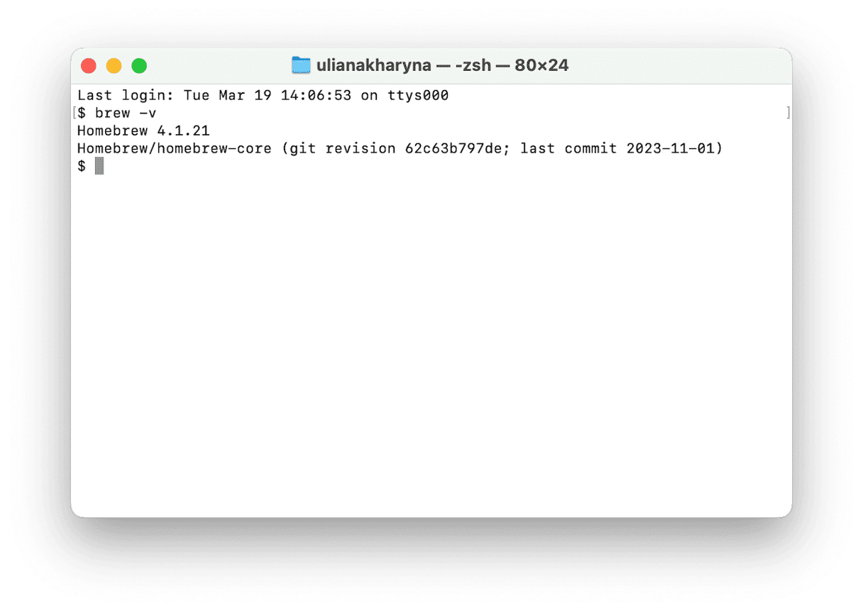 xcode-select -vdans une fenêtre de terminal. Si vous voyez une réponse avec « xcode-select version », il est déjà installé. Sinon, tapezxcode-select --installpour l'installer. - Une fois que vous avez installé les outils de ligne de commande, utilisez cette commande pour installer Homebrew : /use/bin/ruby -e "$(curl -fsSL https://raw.githubusercontent.com/Homebrew/install/master/install)"`