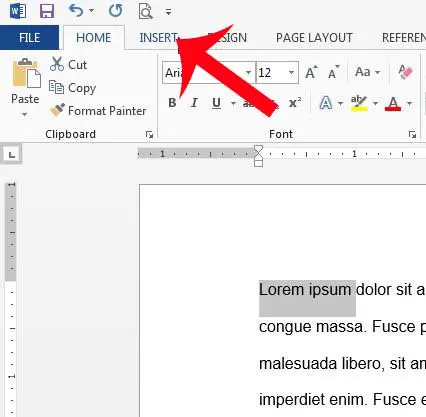 Étape 4 : revenez à Microsoft Word 2013, puis cliquez sur le boutonInséreronglet en haut de la fenêtre.