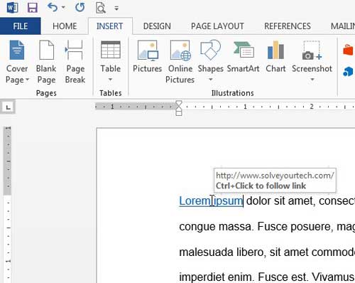 Création d'un lien hypertexte dans Word 2013