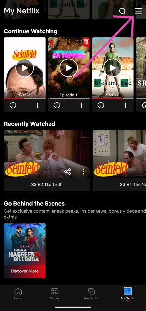 Étape 2 :Appuyez surMon Netflixdans le coin inférieur droit de l'écran.